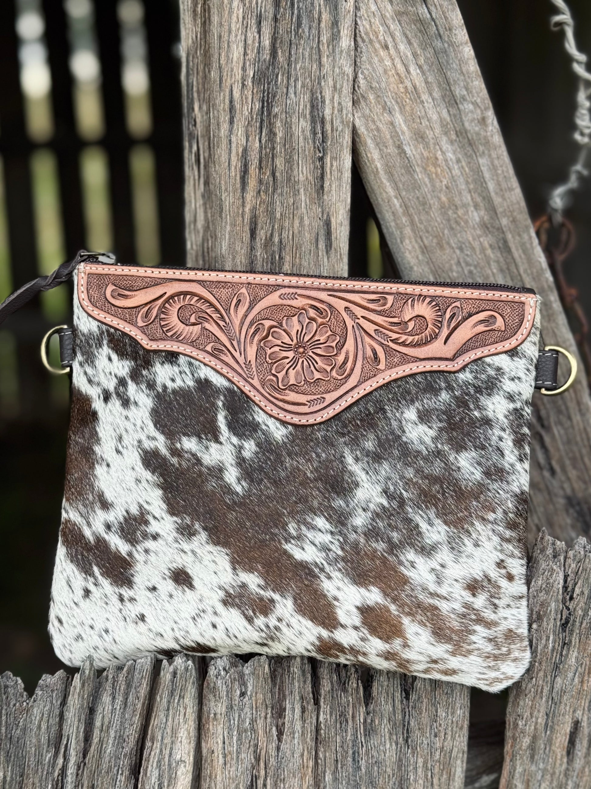 Costa Rica is an impressive oversized cowhide clutch bag with hand tooled details is a perfect day-to-night option. This sleek style features enough room for use as an evening cowhide clutch or a day cowhide sling Bag or super sized make-up cowhide purse when travelling. This beauty finished off with stunning hand tooled details, includes detachable and adjustable genuine leather shoulder strap plus detachable wrist strap.